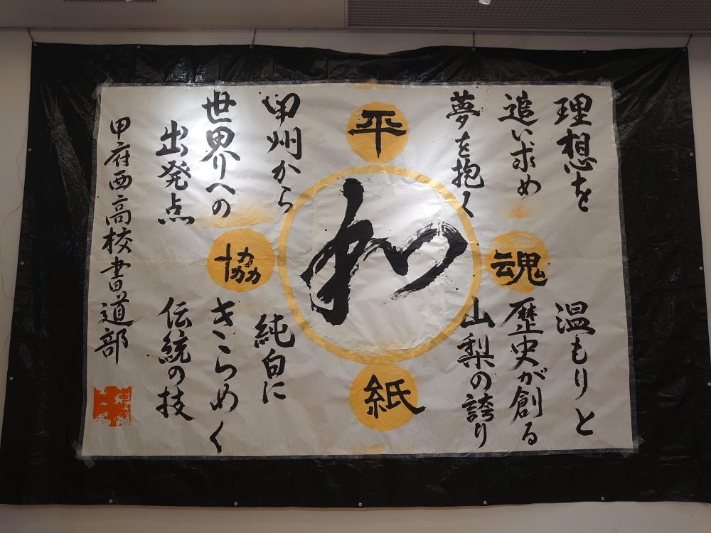 書道部が第5回甲州和紙まつりで書道パフォーマンスを披露しました。