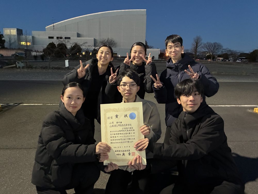 ホーム20261月西関東アンサンブルコンテストに出場しました 2026年1月26日カテゴリー: 部活動 吹奏楽 西関東アンサンブルコンテストに出場しました 令和8年1月25日(日)に、久喜総合文化センター(埼玉県)にて西関東アンサンブルコンテストが開催されました。 吹奏楽部の打楽器チームが、打楽器6重奏を演奏しました。 審査の結果、銀賞を受賞しました。 努力してきたことを評価していただき、メンバー一同喜んでいます。 この大会を通して学んだことを、今後の活動に生かしていきたいと思います。 応援ありがとうございました。