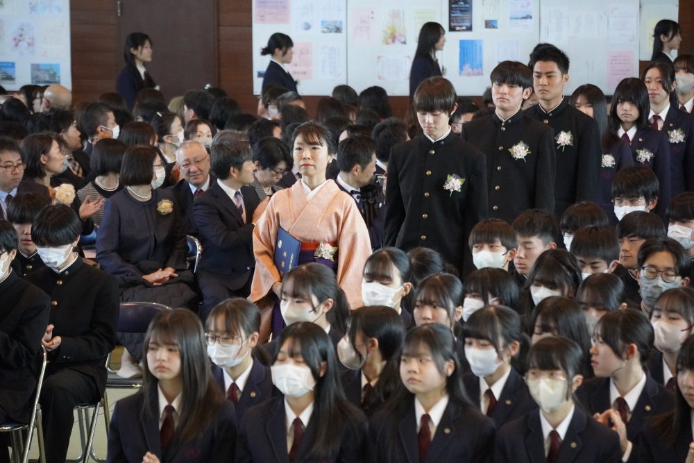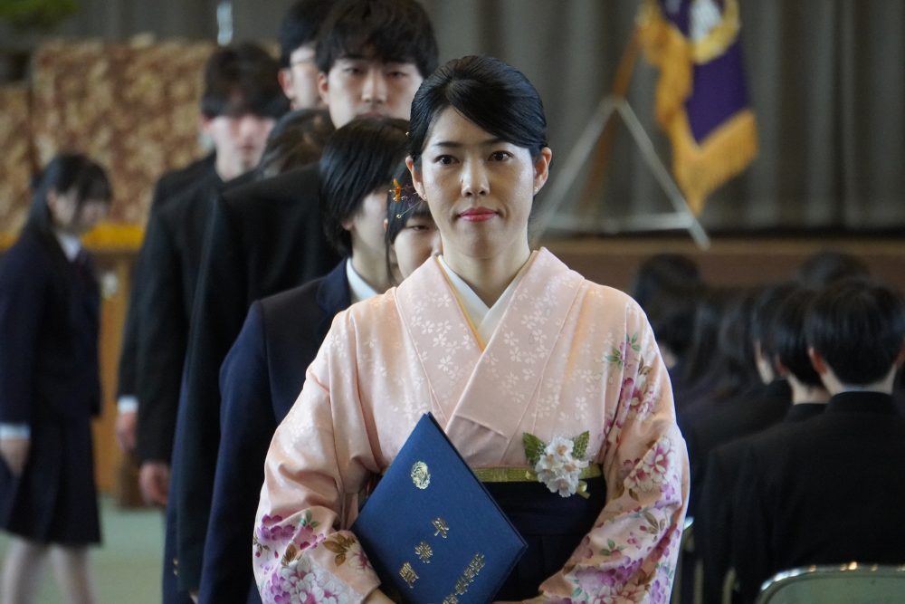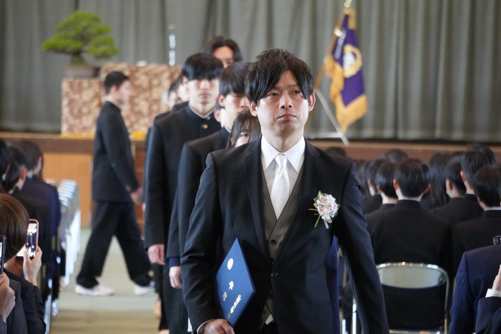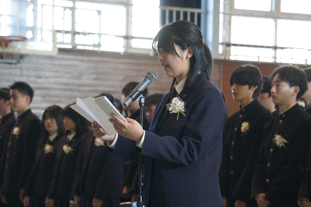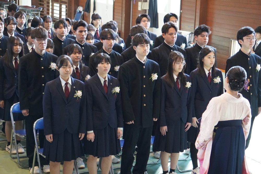 ホーム20263月令和7年度 第78回 山梨県立甲府西高等学校 卒業証書授与式 2026年3月1日カテゴリー: 学校から 3年次 各種行事 卒業式 令和7年度 第78回 山梨県立甲府西高等学校 卒業証書授与式 令和8年3月1日,令和7年度 第78回 山梨県立甲府西高等学校 卒業証書授与式 が外壁工事の終ったキレイな校舎・体育館において行われ,3年前の入学式同様に穏やかな春の日差しのもと,卒業生194名が卒業していきました。西高を卒業しても、大学を卒業しても、社会人になっても、自分自身の答えに正面から向き合っていく人生を送っていくことを期待しています。本日で3年間のロングラン公演『西高劇場~n・stage~』は閉幕です。新しい仲間との次の公演を楽しみにしています。御卒業,本当におめでとうございました。