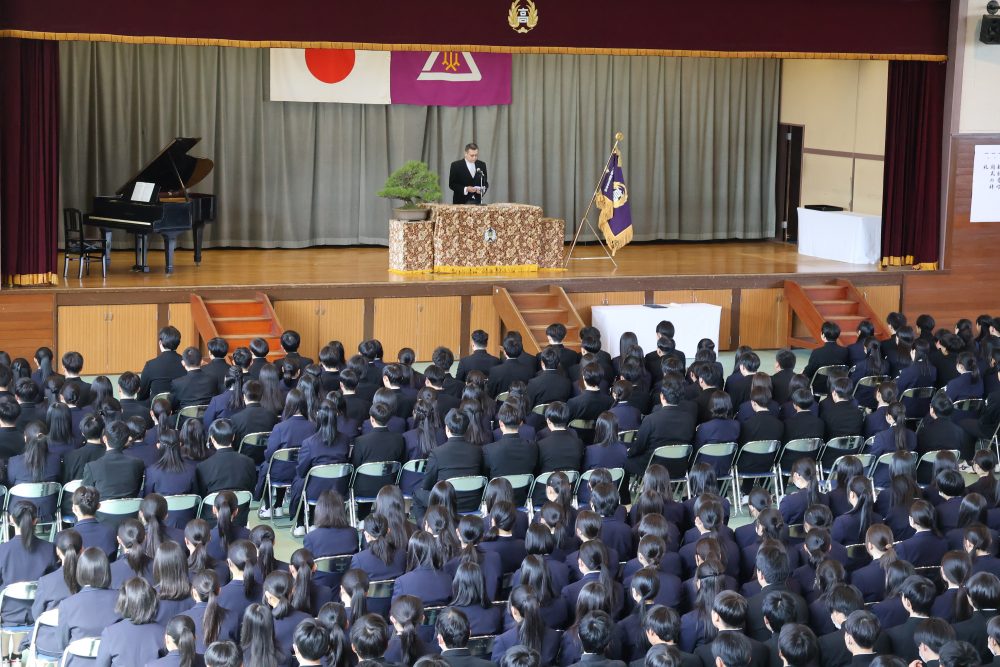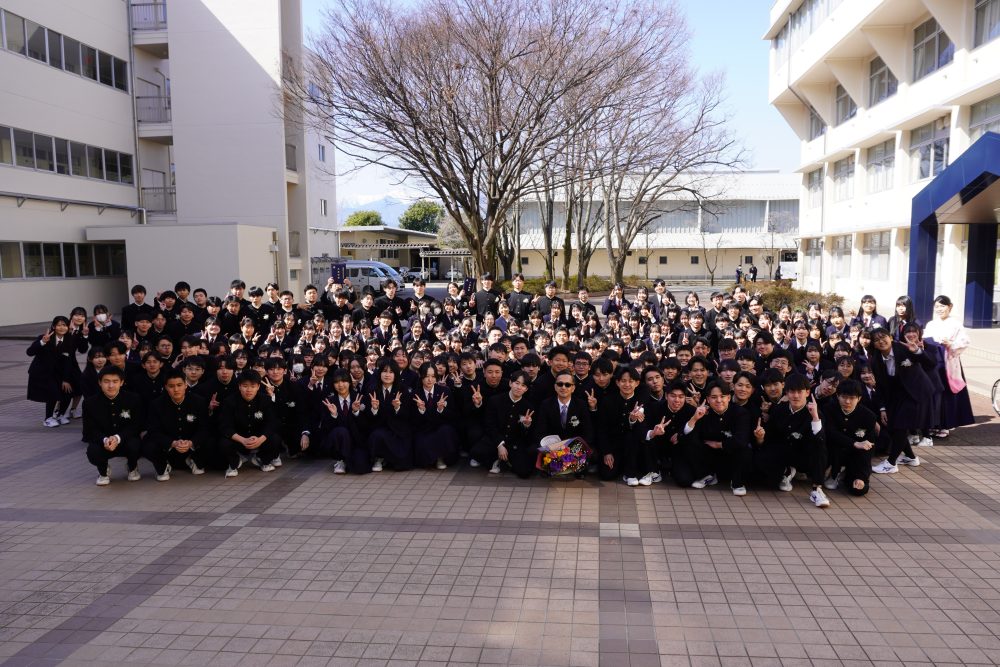 令和8年3月1日,令和7年度 第78回 山梨県立甲府西高等学校 卒業証書授与式 が外壁工事の終ったキレイな校舎・体育館において行われ,3年前の入学式同様に穏やかな春の日差しのもと,卒業生194名が卒業していきました。西高を卒業しても、大学を卒業しても、社会人になっても、自分自身の答えに正面から向き合っていく人生を送っていくことを期待しています。本日で3年間のロングラン公演『西高劇場~n・stage~』は閉幕です。新しい仲間との次の公演を楽しみにしています。御卒業,本当におめでとうございました。