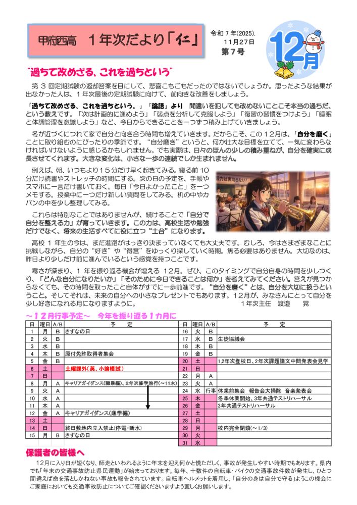 27 | 11月 | 2025 | 山梨県立甲府西高等学校