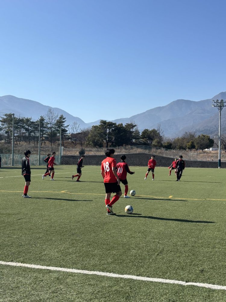 私たち、サッカー部はリーグ昇格および公式戦初戦突破を目標に掲げ、日々活動に取り組んでいます。試合を行うごとにその試合での課題を見つけ出し、一人一人がその課題の解決に向けて目的意識をもって練習に励んでいます。また、日々の練習を通して技術の向上だけでなく、仲間とのコミュニケーションやチームで一つのものに向かって団結することの大切さも学んでいます。昨年は公式戦やリーグ戦に加え、静岡遠征、県内外のチームとの練習試合、他校との合同練習など自分たちを強化するさまざまな経験をたくさん積むことができました。そして、これらの経験ができることを当たり前だと思わず、私たちを指導してくれる先生方、支えてくれている周りの方々への感謝を忘れず、これからもより一層、努力を重ね、いい結果を残せるようチーム全員で協力して精進していきます。